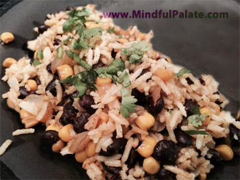 Add the cooked rice to the corn and beans, stirring to combine.