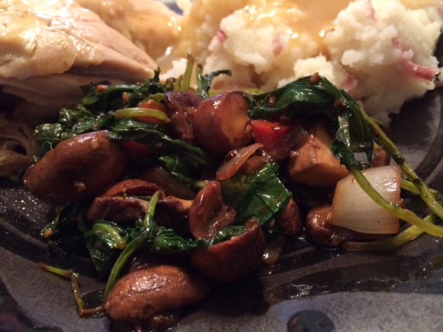 Baby Kale with Mushrooms, Onions, and Balsamic Vinegar