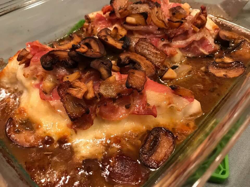 The precise number of slices for provolone and prosciutto will vary depending upon the size of the toppings and the size of the chicken breasts. These days, chicken pieces can be pretty big. You will need enough cheese and prosciutto to cover the top of each piece of chicken. Be generous. It’s a dinner meant to be lavish.