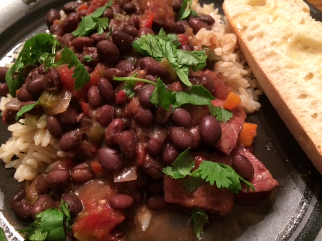 14 oz smoked pork sausage, sliced lengthwise in half and then cut into chunks